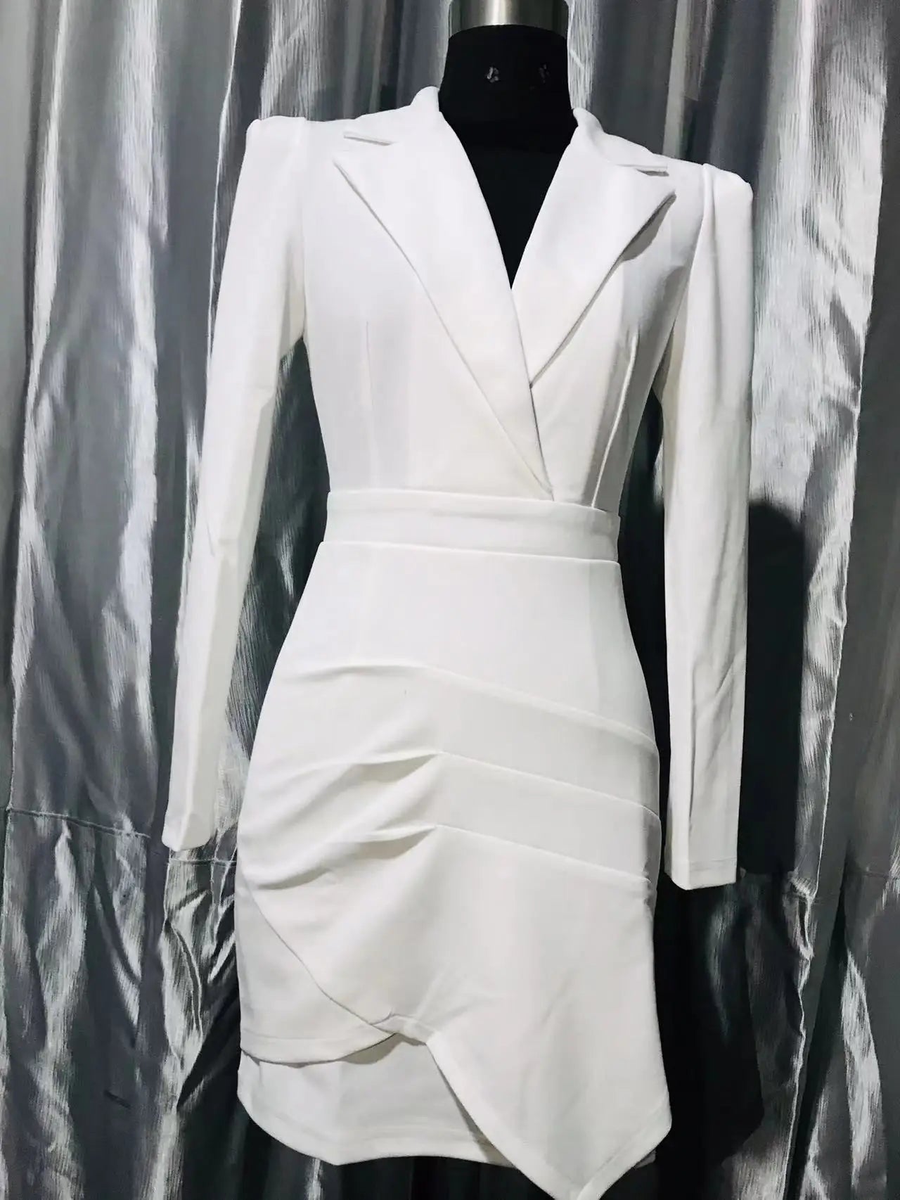Elegant Women's Dress New Summer 2024 Irregular Pleated Slim Fit Professional Long Sleeved Dresses Suit Collar Y2k Short Skirt