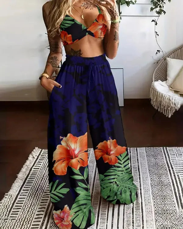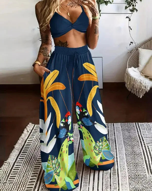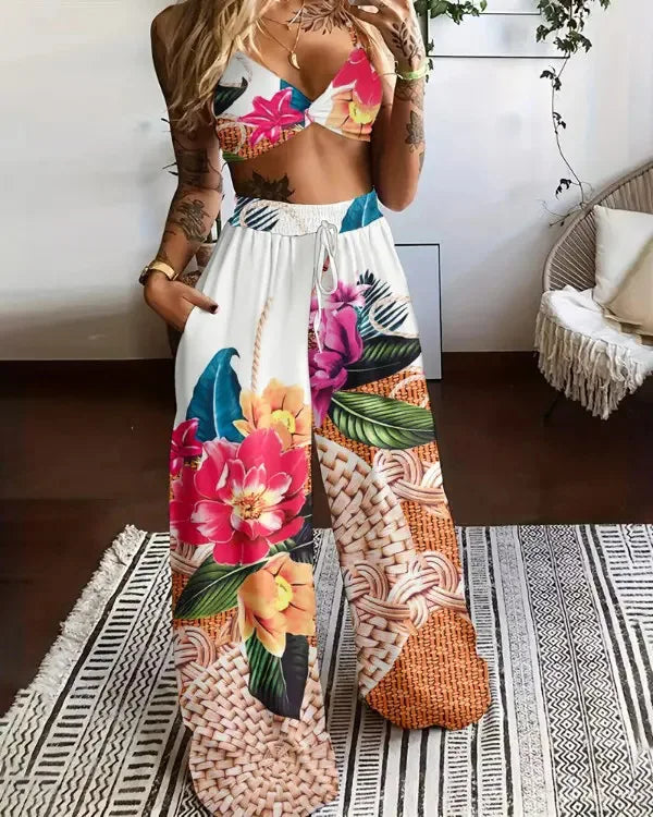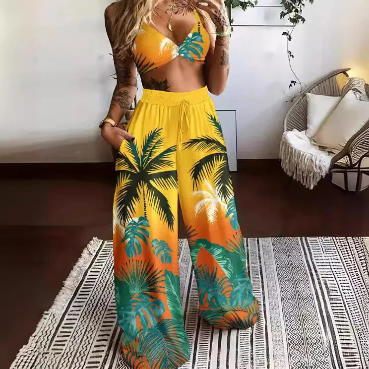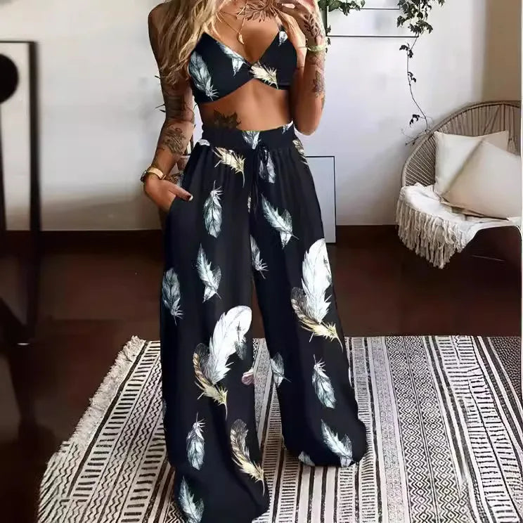 Fashion Pants Set Women 2 Piece Women's Clothing Casual Print Sleeveless Tank Tops and Trousers Suit Streetwear Spring 2024 New