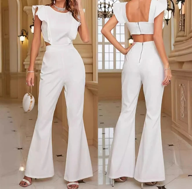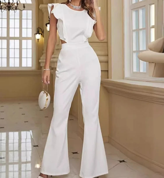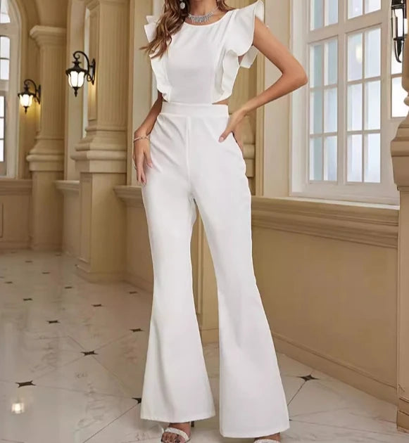 Sexy Elegant Women's White Ruffled Jumpsuit Temperament Commuting Female Clothes Summer Women Thin Elegant High Waist Jumpsuits