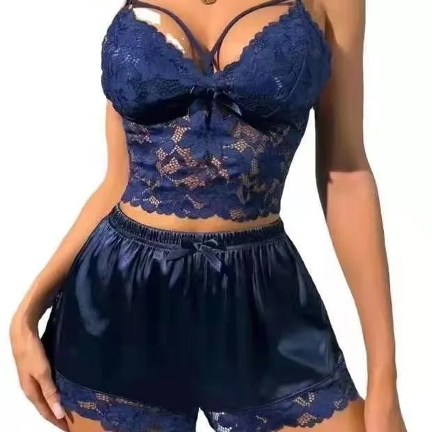 Sexy Shorts 2 Piece Sets Womens Outfits Summer 2024 New Camisole Lace Vest Top+half Pants Pajama Suit for Female Streetwear