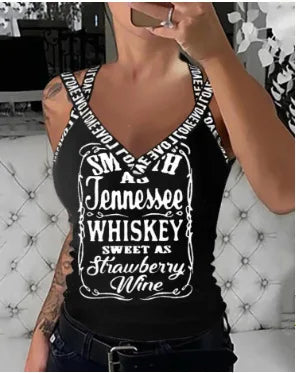 Tank Top Woman Summer 2024 Streetwear Letter Printed Short Slim Fitting V-Neck Shoulder Strap Without Sleeves Top for Female