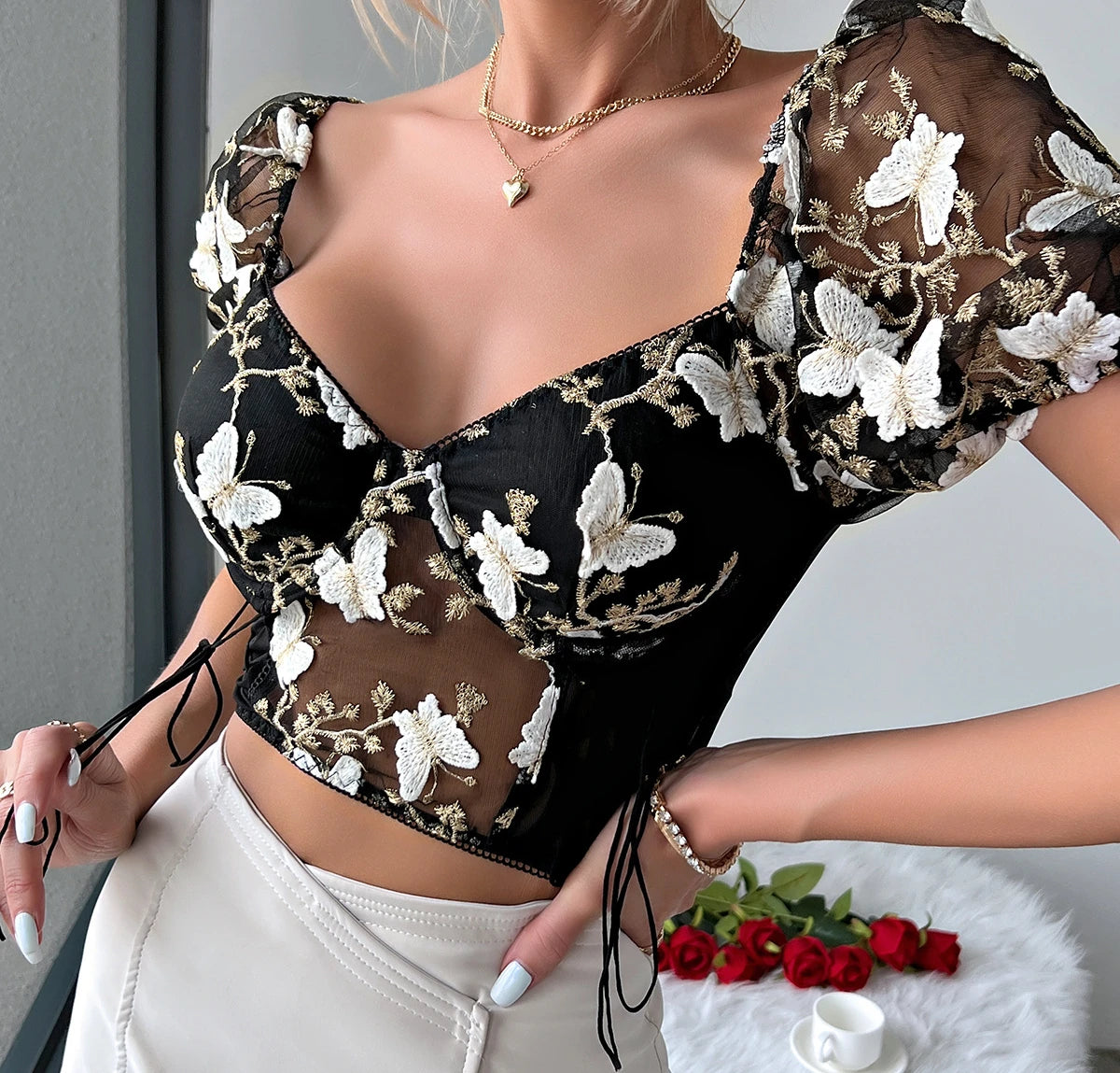 Women's Sleeveless Tank Top 2024 Summer Streetwear Slim Printed Spicy Girl Open Back Perspective Strap Spliced Mesh Sexy Vest