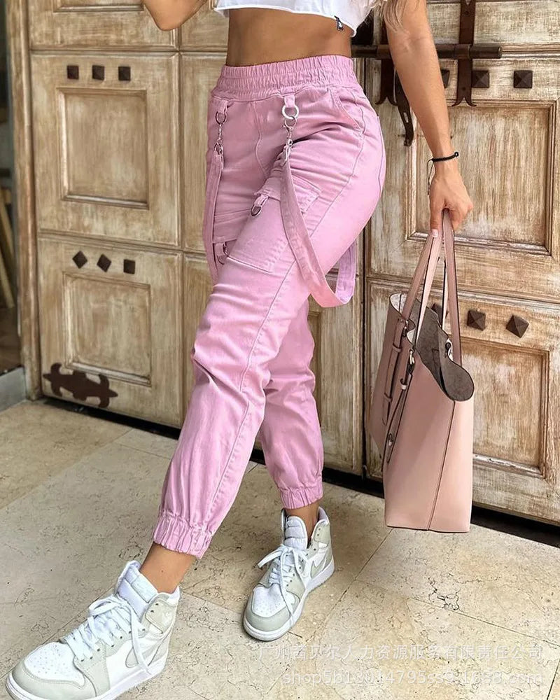 Women's Vintage Wide Leg Trousers Pink Streetwear Casual Cargo Pants Joggers Sweatpants Summer Clothes Y2K Fashion New 2023